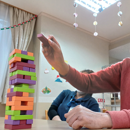 | 14:00〜 | レクリエーション | 共有スペースにて、 他の利用者様と一緒に様々なメニューを行います。 | |