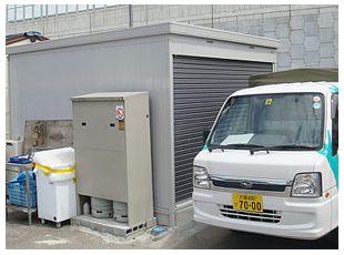 てんぷら油のリサイクルで、バイオディーゼルを精製するところです。その燃料で軽油燃料自動車が走ります。