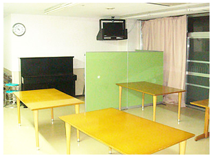 食堂として、レクリエーションなどにも使用されます。現在は、主に『あさがお班』という高齢者・重度の方の日中活動の場として使われています。