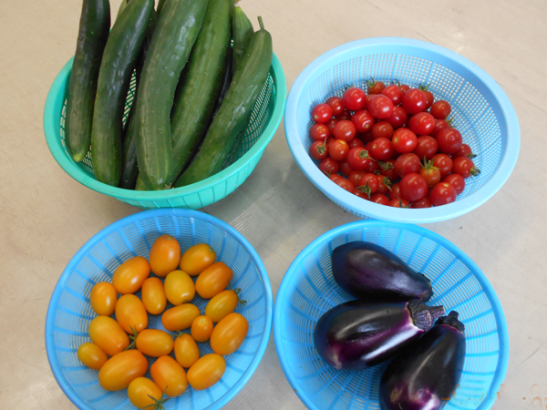土作りから無農薬にこだわっています。春の玉ねぎ、夏のミニトマトやキュウリ、秋のサツマイモ、冬の大根など季節感のあるものに取り組んでいます。収穫した野菜は販売や、みんなで収穫して食べるなどしています。